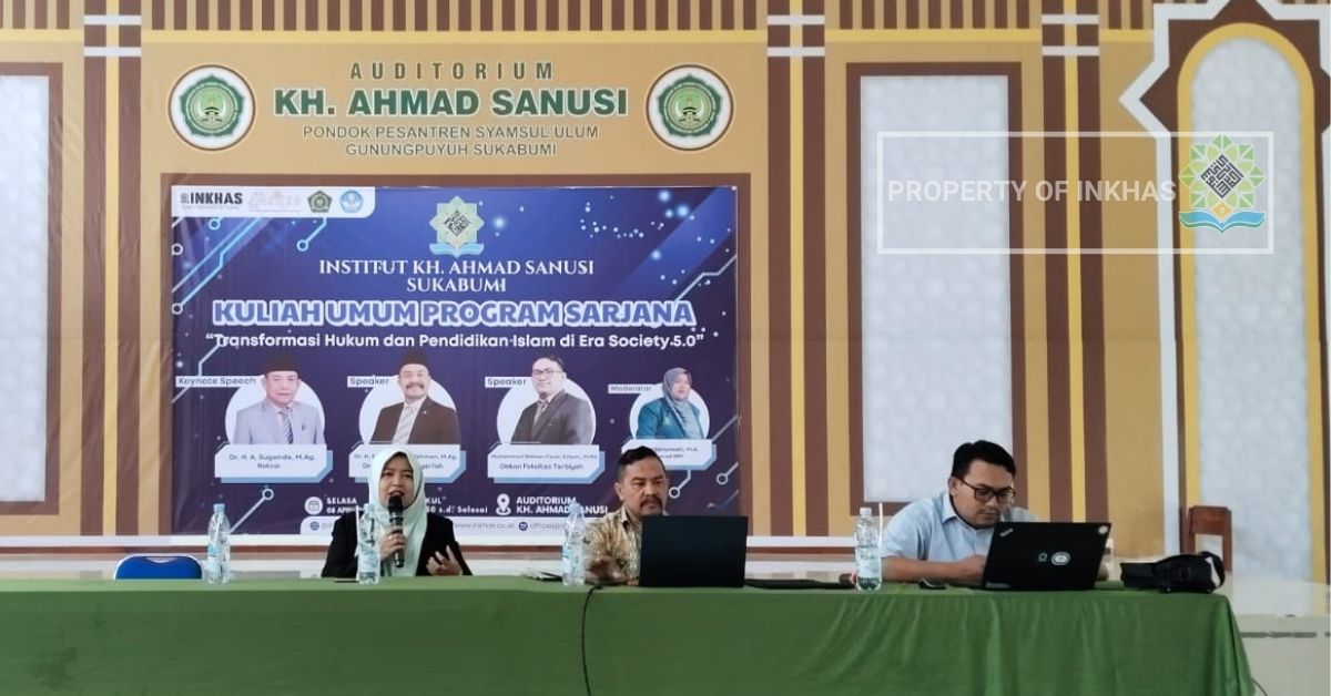 Sukabumi, 8 April 2025 — Institut KH. Ahmad Sanusi (INKHAS) Sukabumi kembali menggelar Kuliah Umum Program Sarjana sebagai bentuk komitmen terhadap penguatan wawasan akademik mahasiswa di tengah tantangan global. Bertempat di Auditorium KH. Ahmad Sanusi, kegiatan ini mengusung tema strategis dan kontekstual: “Transformasi Hukum dan Pendidikan Islam di Era Society 5.0.” Kegiatan ini dihadiri oleh mahasiswa dari berbagai program studi dan disambut dengan antusiasme yang tinggi.